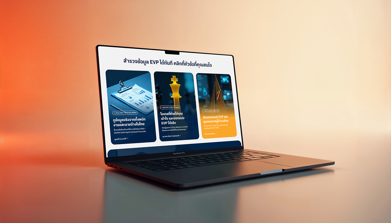 EVP เป็นเรื่องซับซ้อน (แนวคิด/การวัดผล/การใช้งานในองค์กร) และมีหลายกลุ่มเป้าหมาย ทั้ง HR/ผู้บริหาร/พนักงาน เราต้องทำให้ “คุณค่าหลัก + หลักฐาน” ถูกเห็นเร็วและไปต่อได้ในไม่กี่คลิก